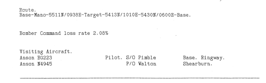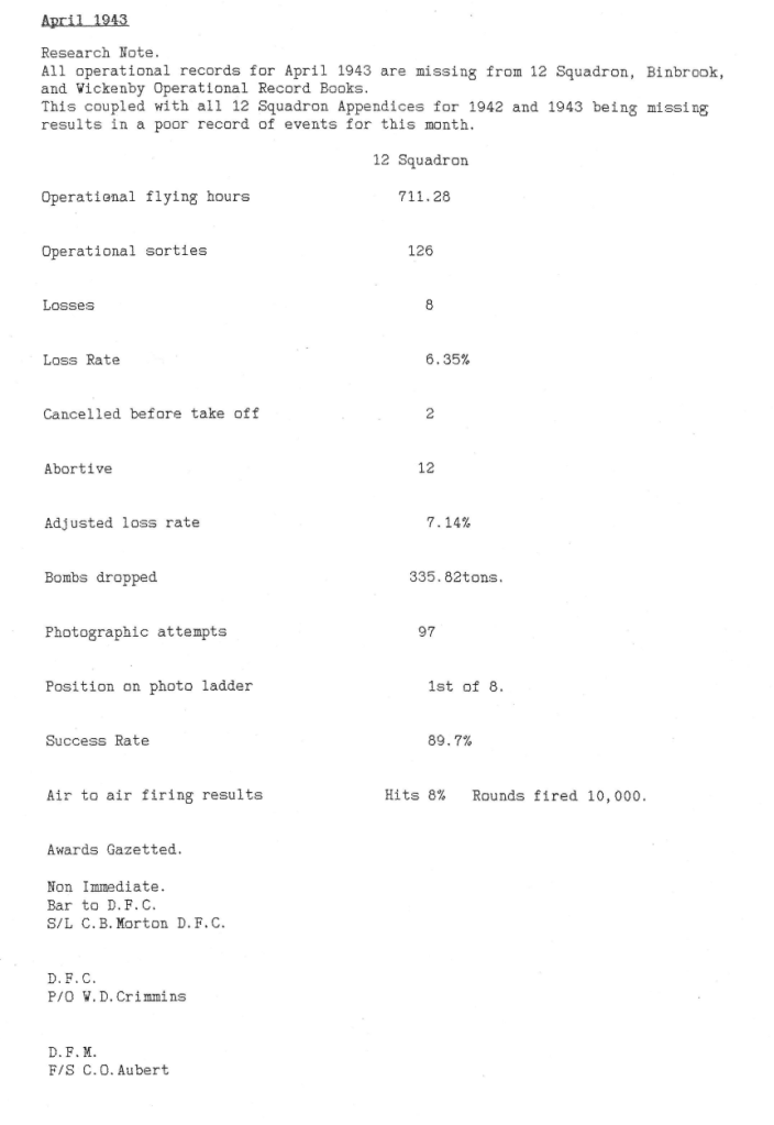 Extract from the Appendix to the 12 Sqn Operational Record Book