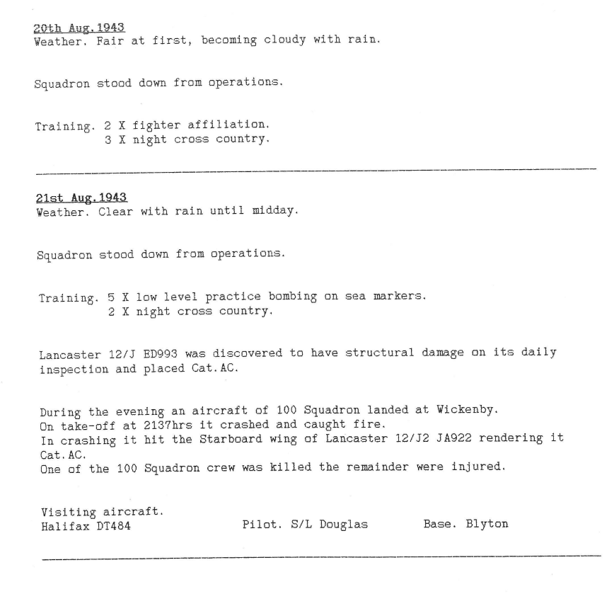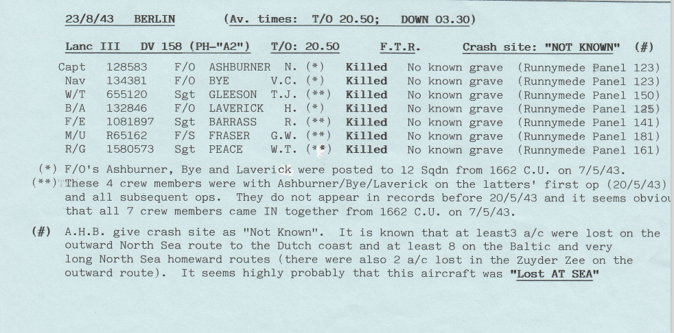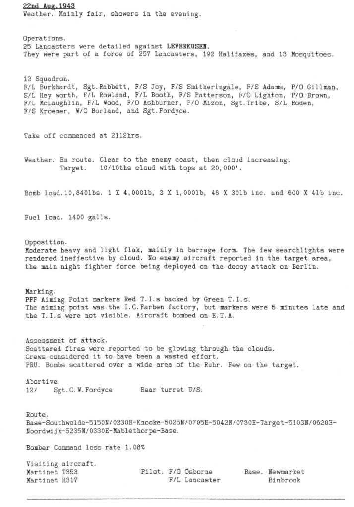 Extract from the Appendix to 12 Sqn Operational Record Book