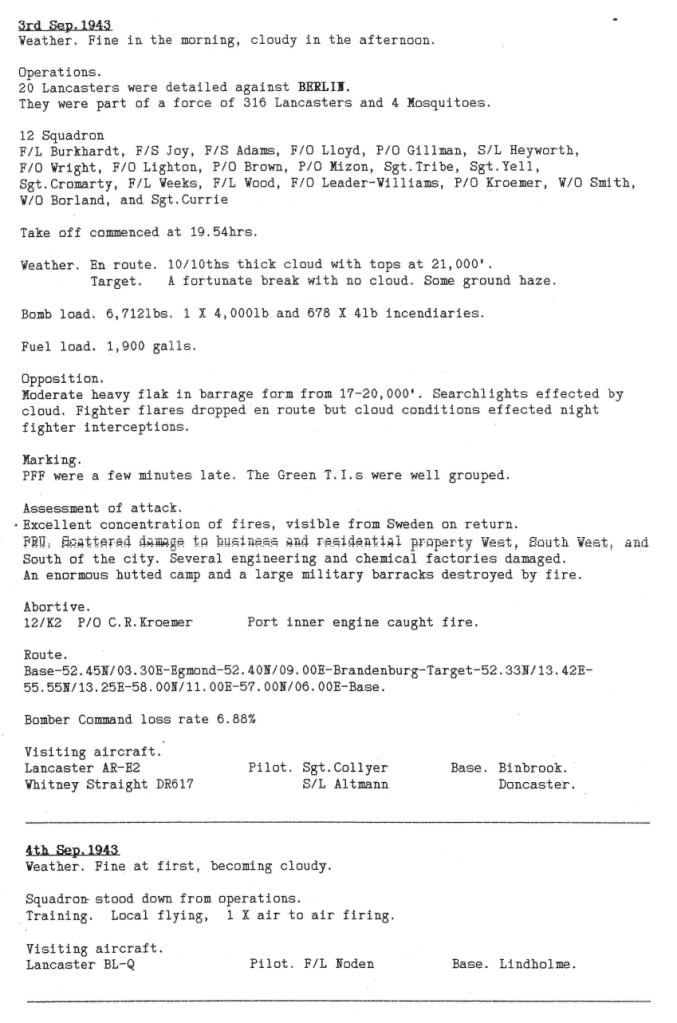 This week, attacks were concentrated on targets in Germany – Berlin, Mannheim/Ludwigshafen and Munich – apart from 2 aircraft which dropped mines off the coast of Brittany. 2 aircraft were lost and 4 aircrew killed, one of the aircraft ditched in the North Sea and 5 of the crew were rescued.