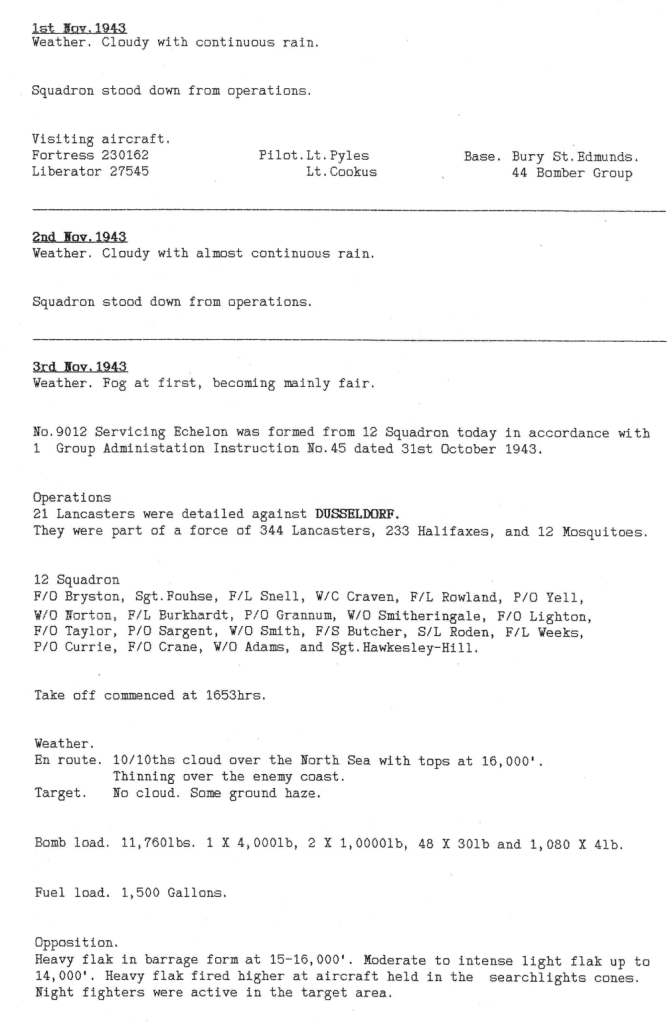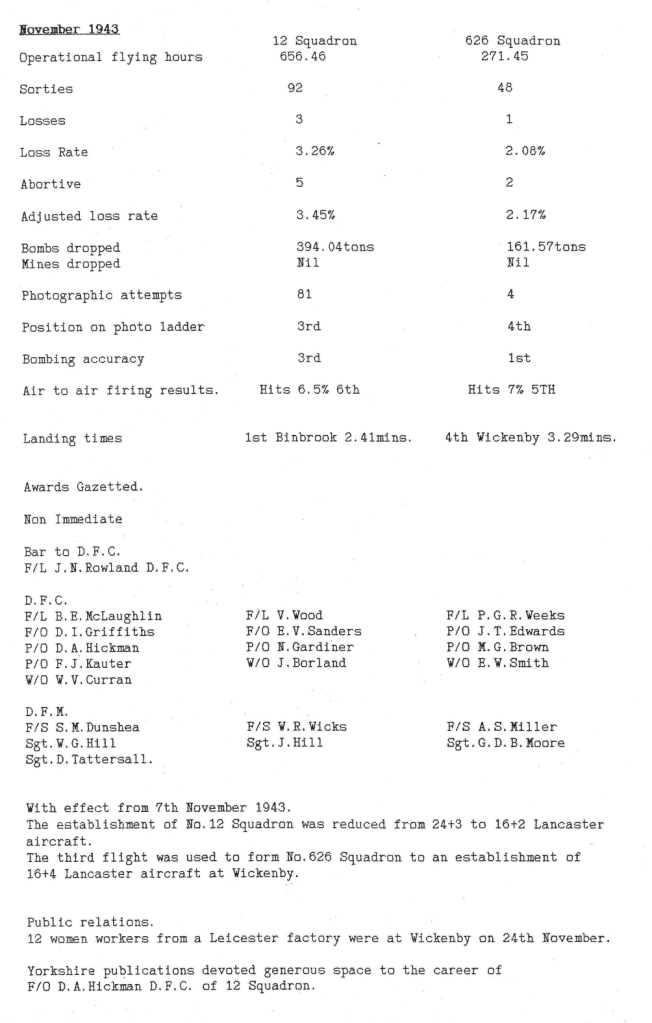 You will also notice, in the summary of November in the Station Diary, that 626 Sqn was formed on 7th November – this will be covered in more detail in the next post.