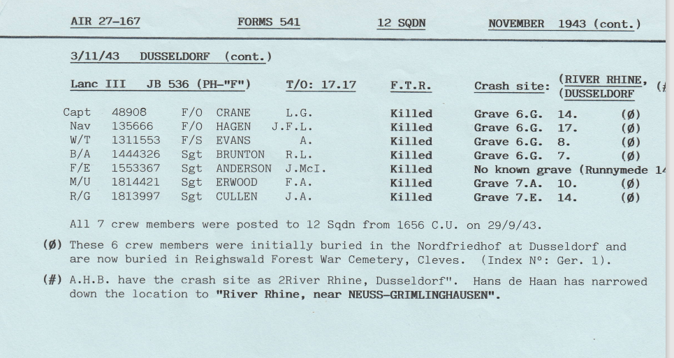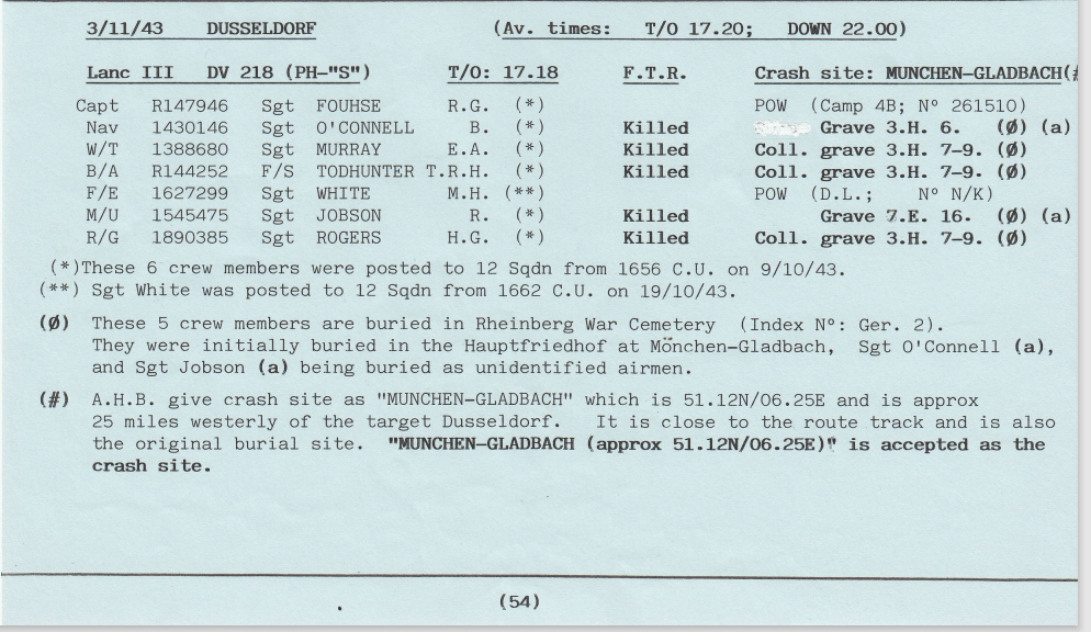 Only one operation this week, to Dusseldorf, but 2 aircraft were lost, with 12 aircrew killed and 2 becoming prisoners of war – both crews were on their first mission.