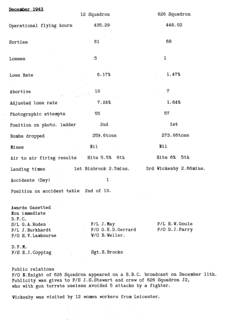 The battle of Berlin was in full swing and, although only 2 missions were flown this week, both to Berlin, 12 and 626 Sqn’s lost 10 aircraft with 36 aircrew killed and 6 becoming POW’s.