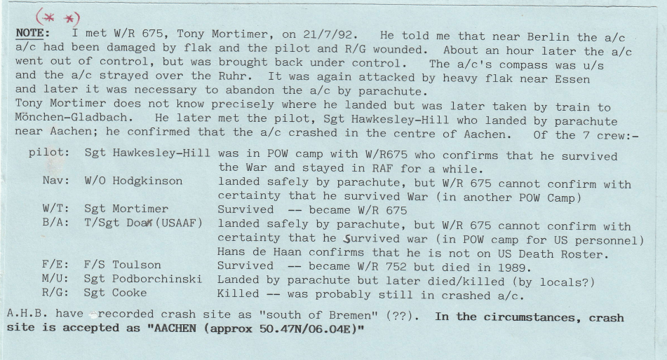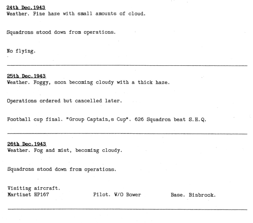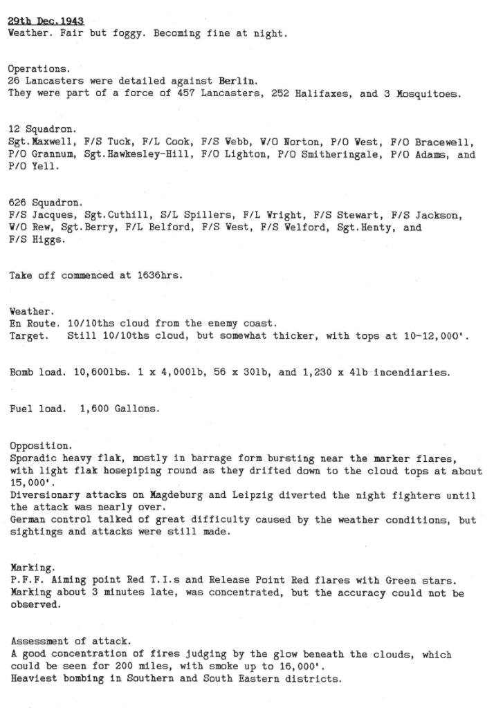Only one operation this week, to Berlin on 29/30 December, with one aircraft lost, 2 crew killed and 5 becoming POW’s. One of the captured aircrew was a United States Army Air Force Technical Sergeant, who was the bomb aimer.