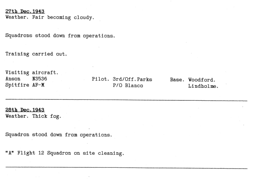 Extract from 12 Sqn Appendix to Operational Record Book