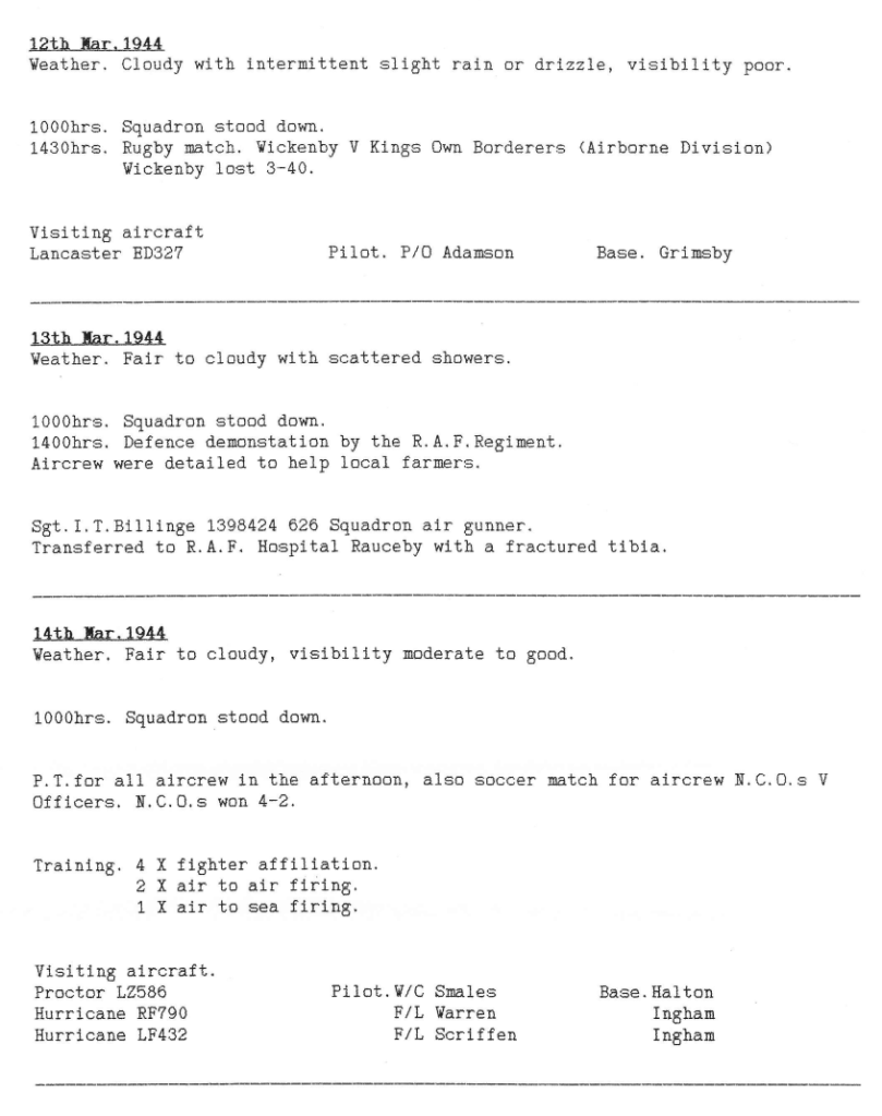 Extract from 12 Sqn Appendix to Operational Record Book