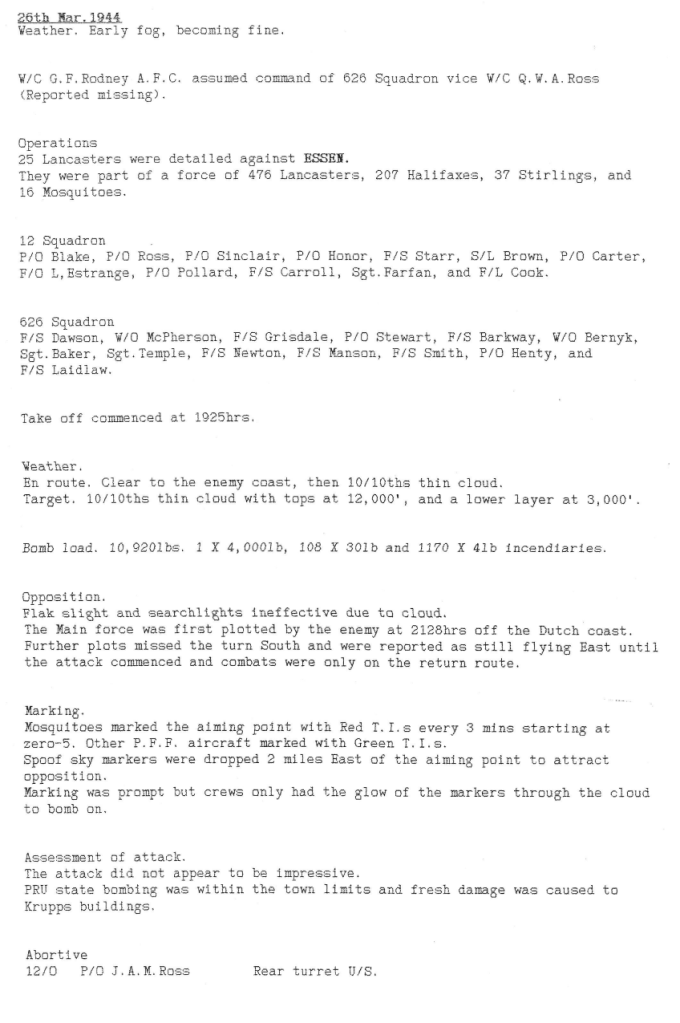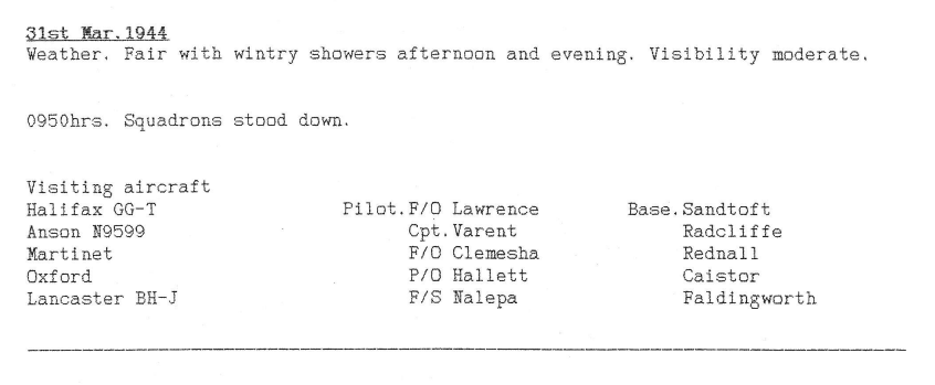 Wickenby aircraft were involved in 3 operations this week, to Aulnoye in France, Essen and Nuremburg in Germany – 3 aircraft were lost, with 20 aircrew being killed, one becoming a POW and one evading capture.