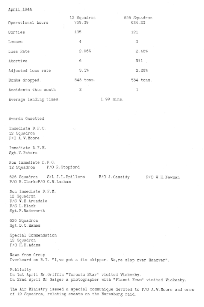 There were no missions flown this week from Wickenby, due to there being a new moon.
