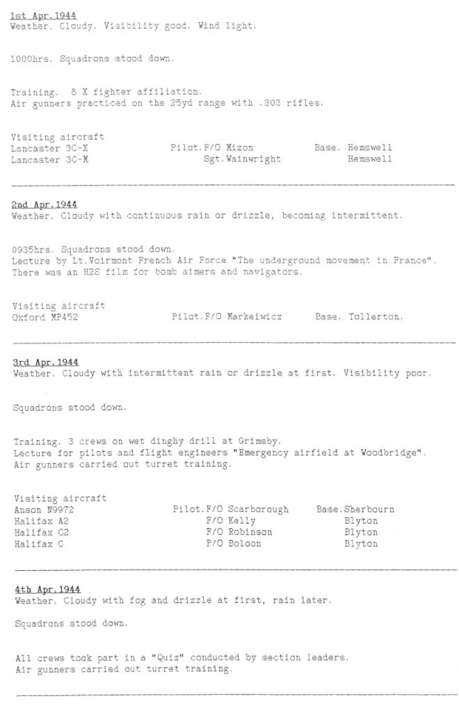 RAF Wickenby history week by week during World War 2