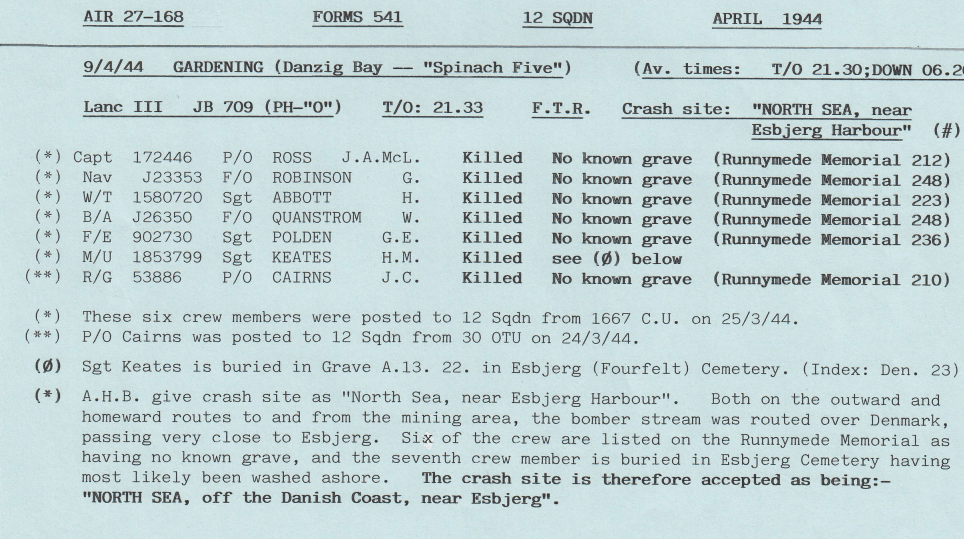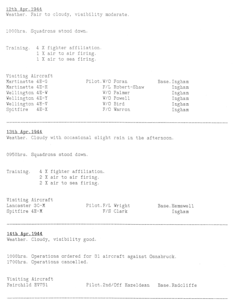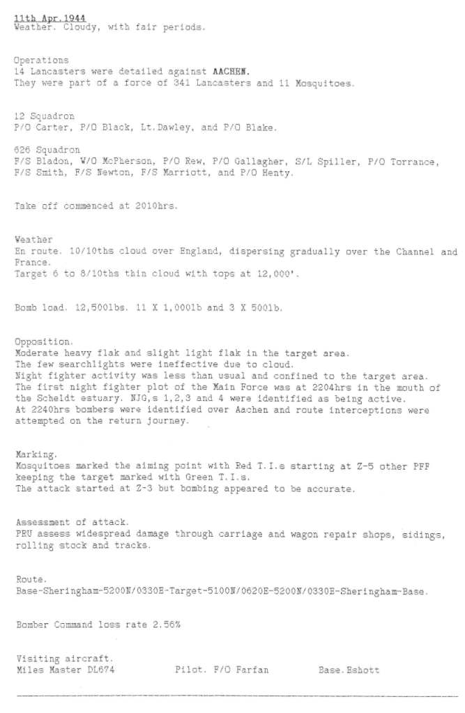 This week, Wickenby squadrons carried out operations to Villeneuve-St-George, Aulnoye, Gulf of Danzig and Aachen. Two aircraft were lost and 13 aircrew were killed and one became a POW (see very comprehensive account below).