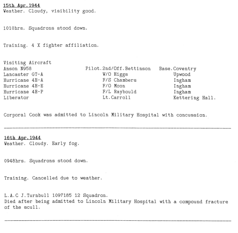 Extract from Station Diary