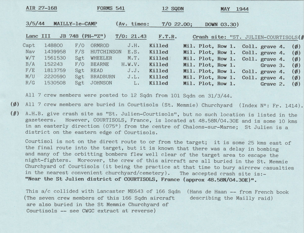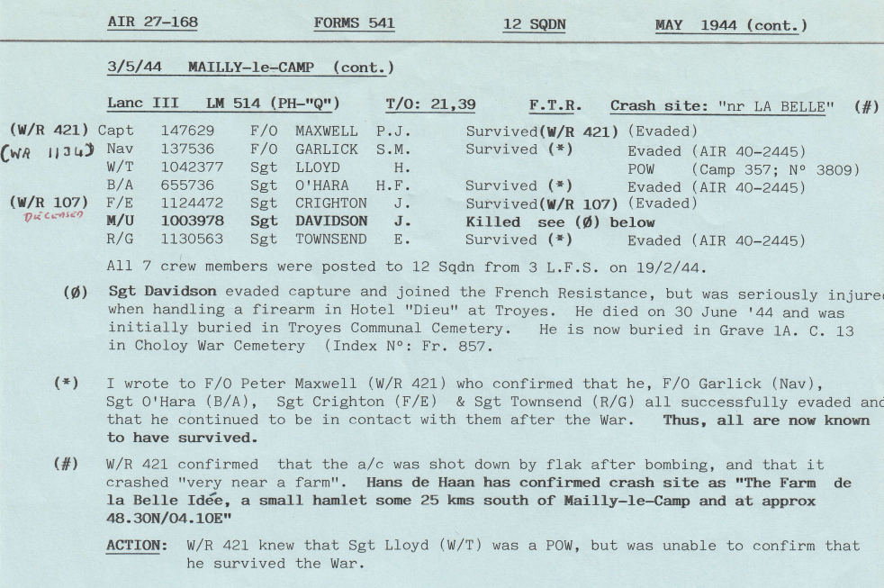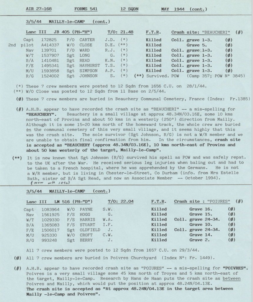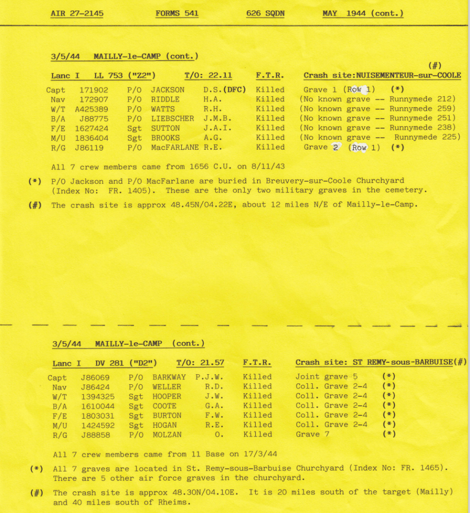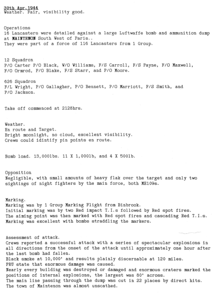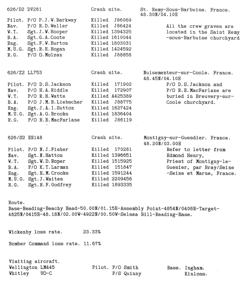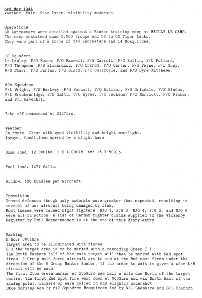RAF Wickenby squadrons continued to support the build up to D-Day by attacking targets in France, including the infamous operation to Mailly-le-Camp, the base of 21 Panzer Division. This was the worst night of the war for RAF Wickenby, as far as losses were concerned, with 7 aircraft lost, 41 aircrew killed, 6 evading capture and 2 becoming POW’s. This was a 23% loss rate.