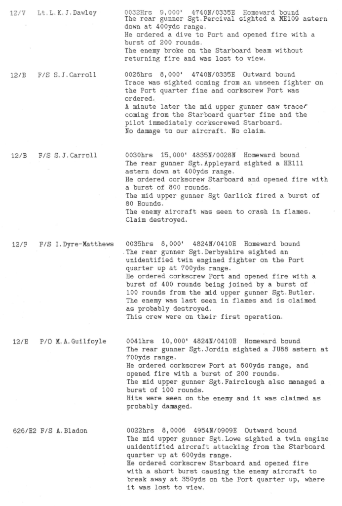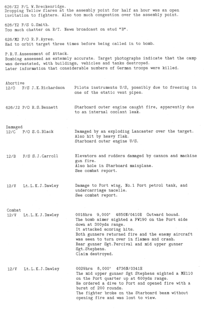 It can be seen from the comments of returning crews below and the number of aircraft damaged and in combat with night fighters that this was a particularly unpleasant and dangerous mission.