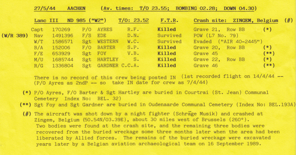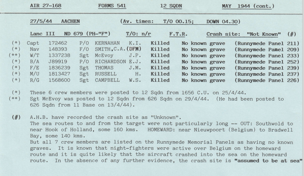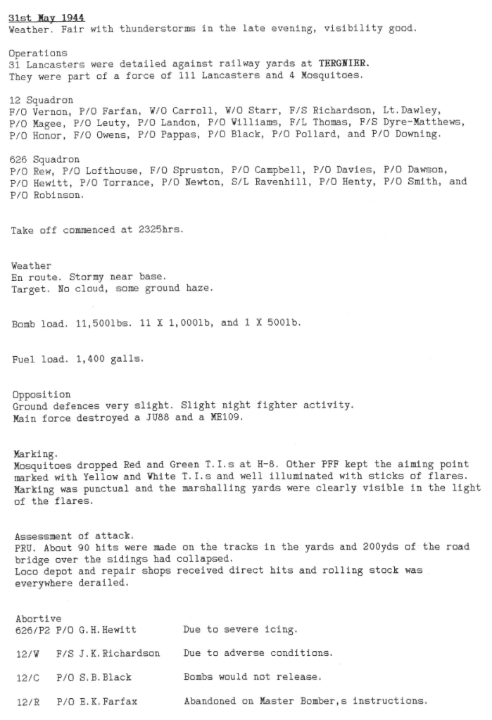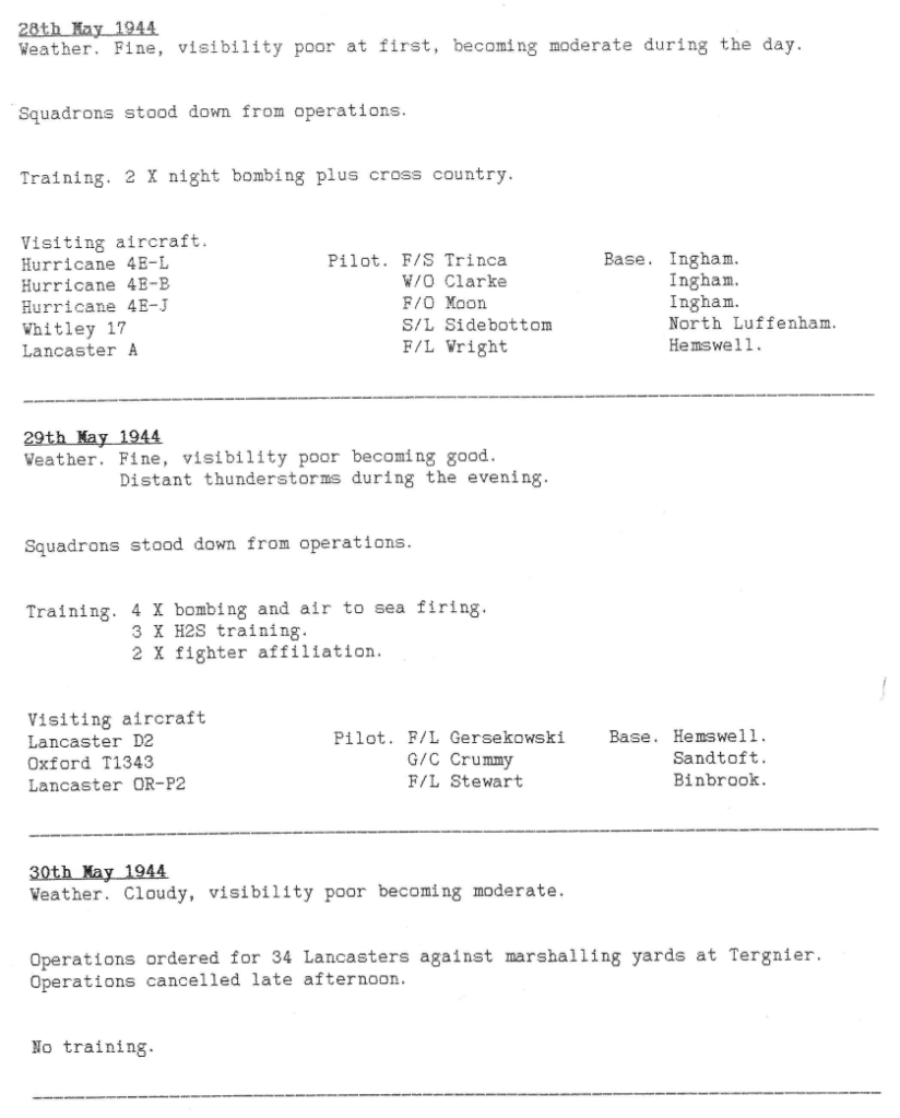 The week before D-Day saw Wickenby aircraft attack targets in Germany and France; Aachen, Tergnier and Berneval-le-Grand. Two aircraft were lost with 12 aircrew killed, one becoming a POW and one evading capture.