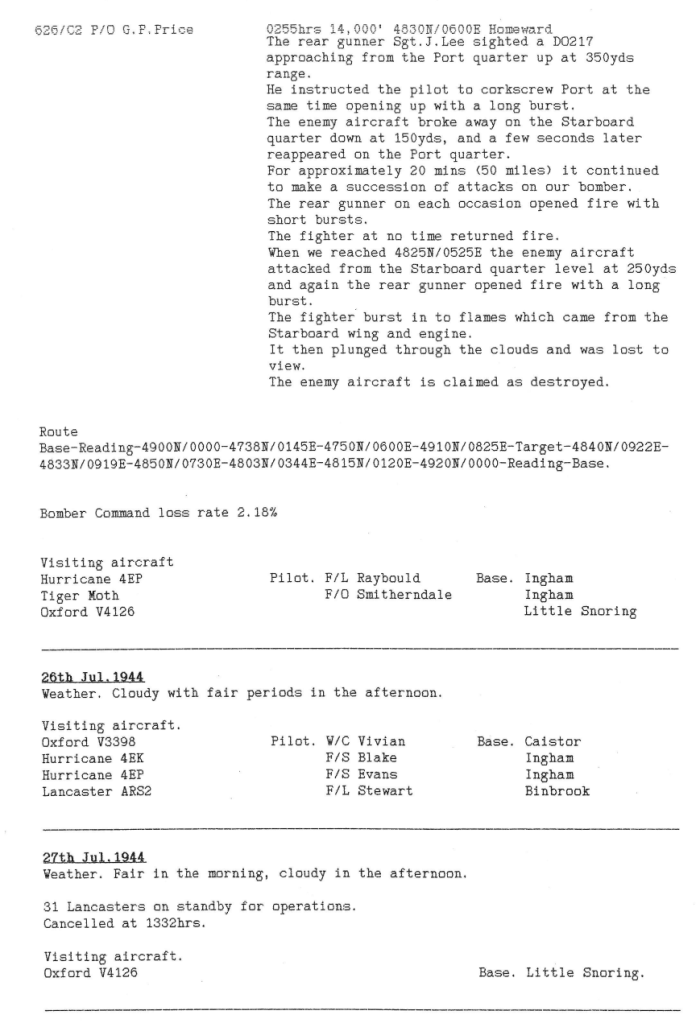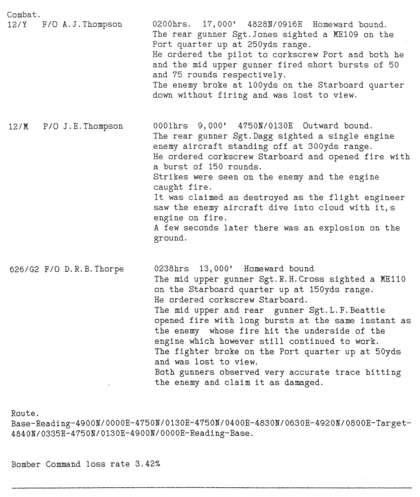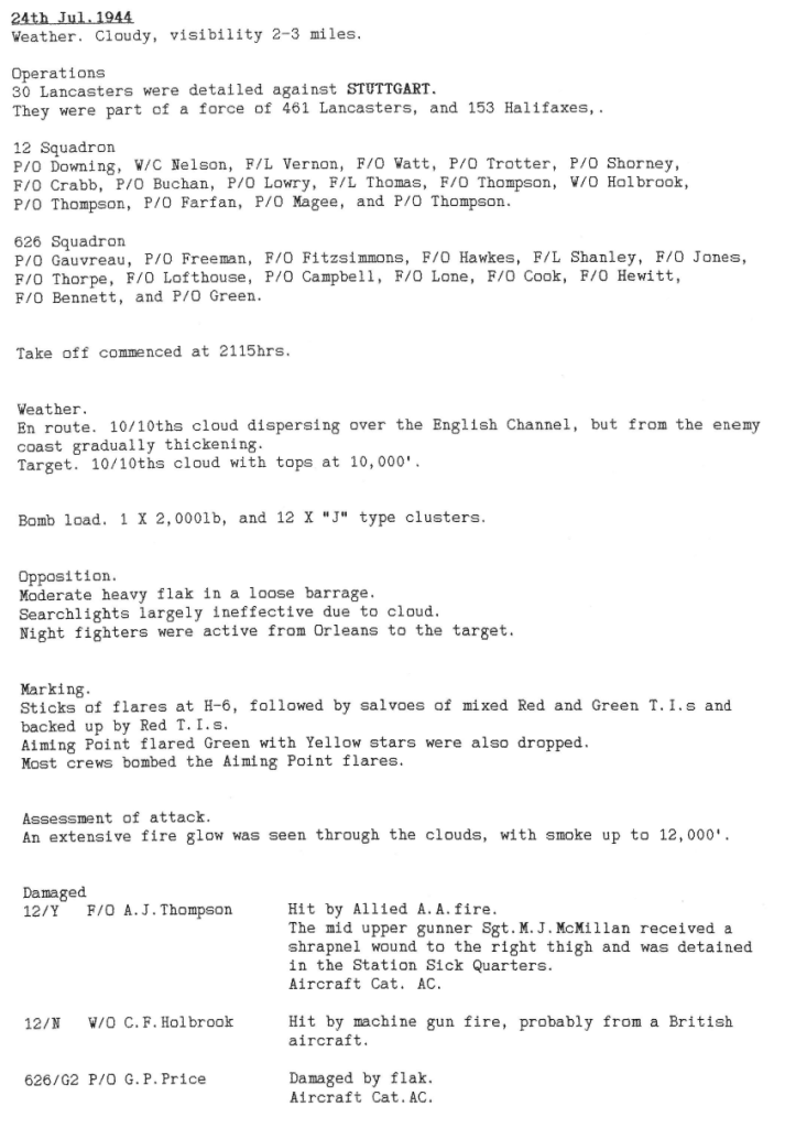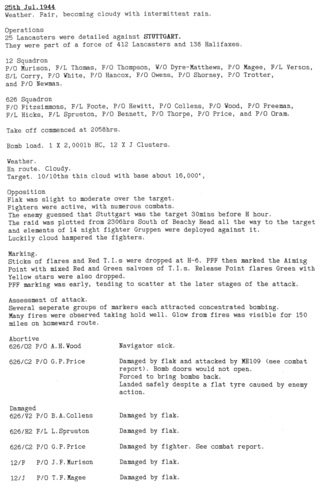 Bomber Command now reverted back to attacking German targets during this week, the first major raids on German cities for 2 months. Wickenby aircraft attacked Kiel Naval Base and Stuttgart, the later on successive nights. No aircraft were lost.