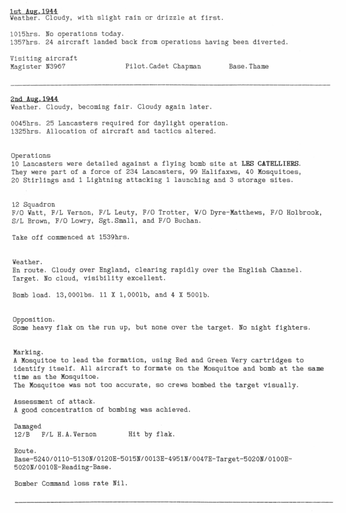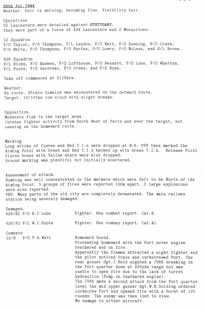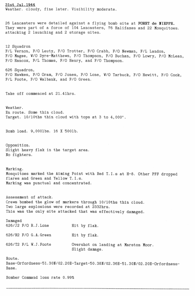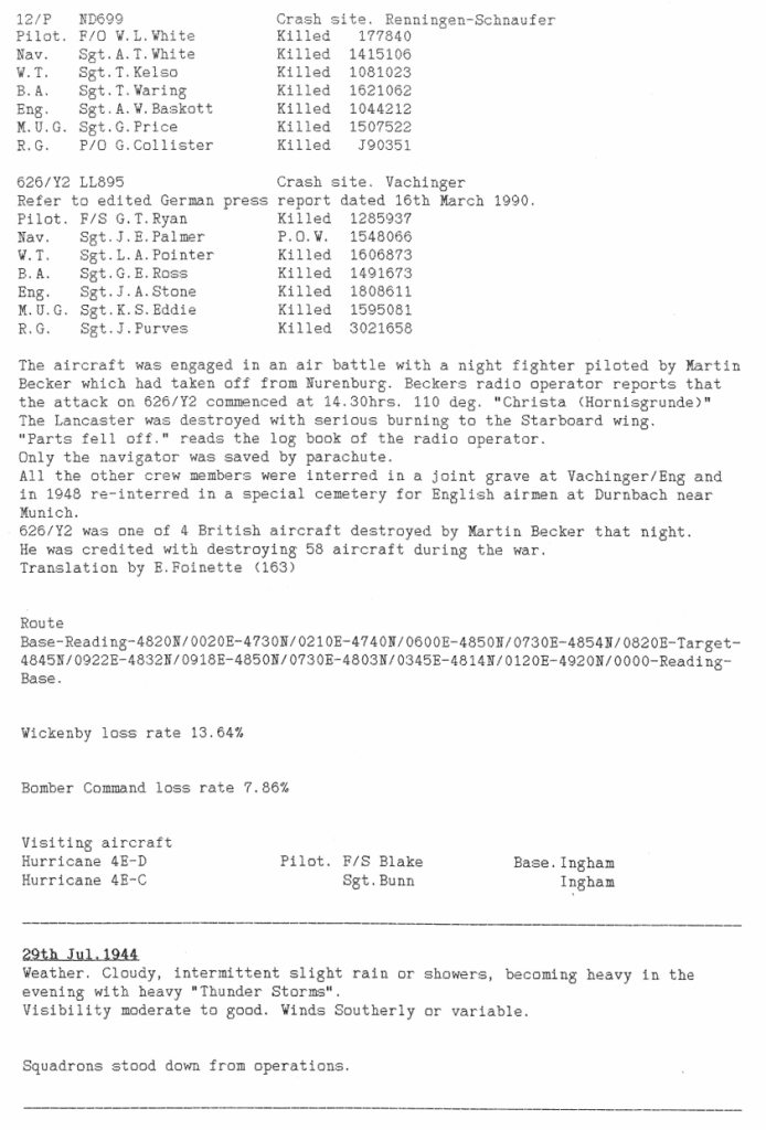 RAF Wickenby aircraft continued to support the Normandy landings and breakout as well as attacking flying bomb sites and a single operation to Stuttgart during this week. 3 aircraft were lost, with 21 aircrew killed and one becoming a POW.