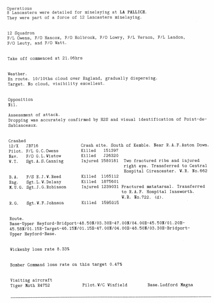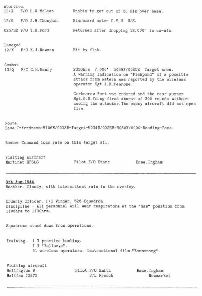 Extract from 12 Sqn Appendix to Operational Record Book