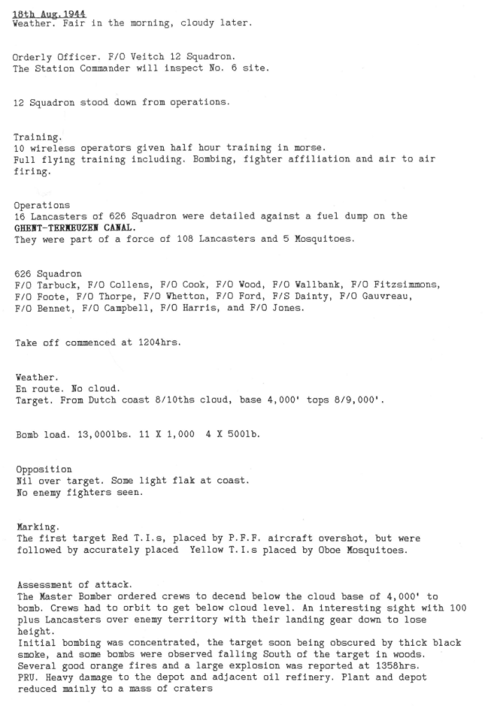 A quiet week for both squadrons, with only one mission to a fuel dump on the Ghent-Termeuzen canal – there were no losses.