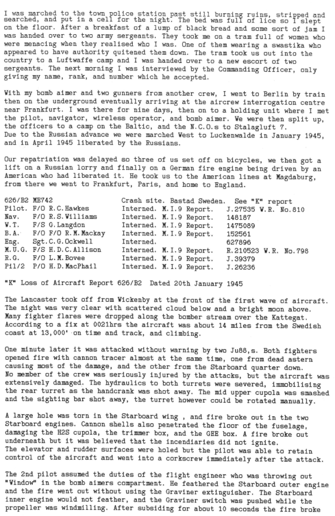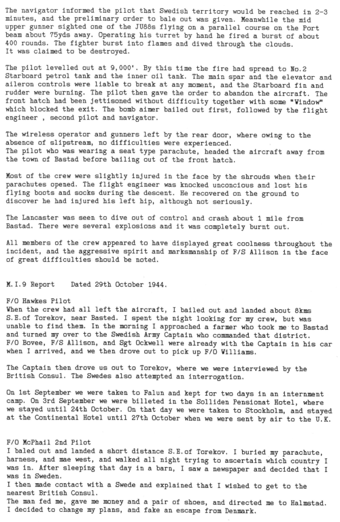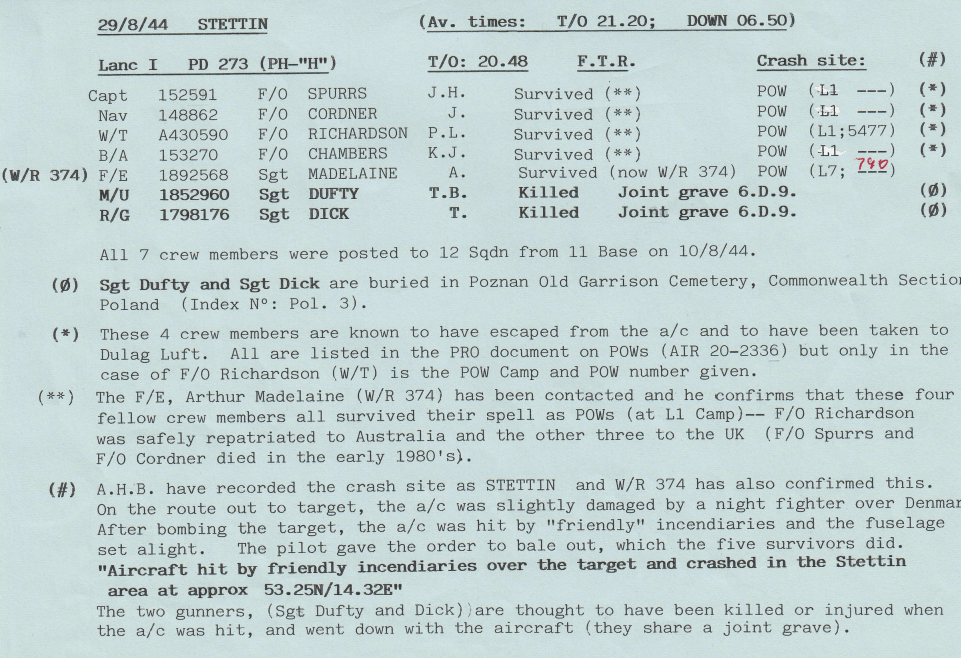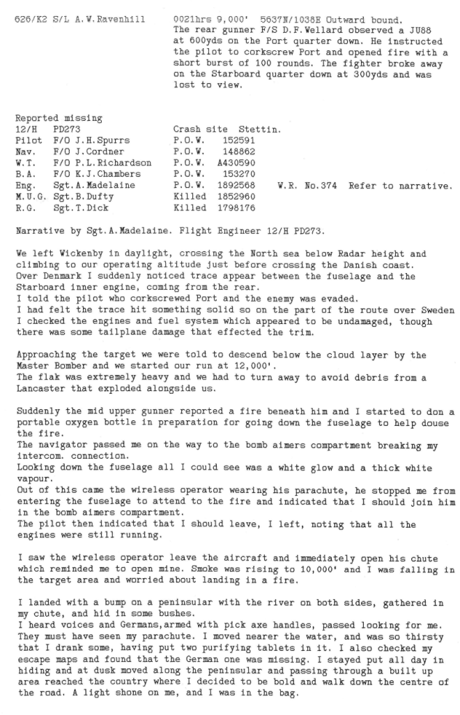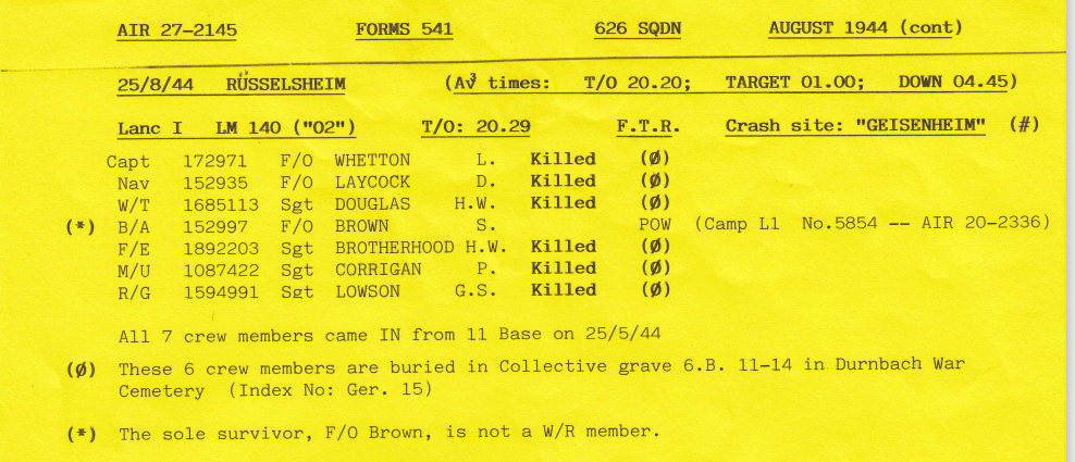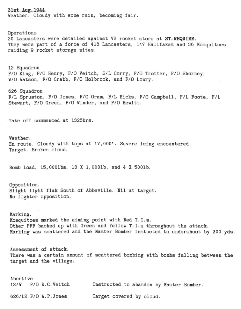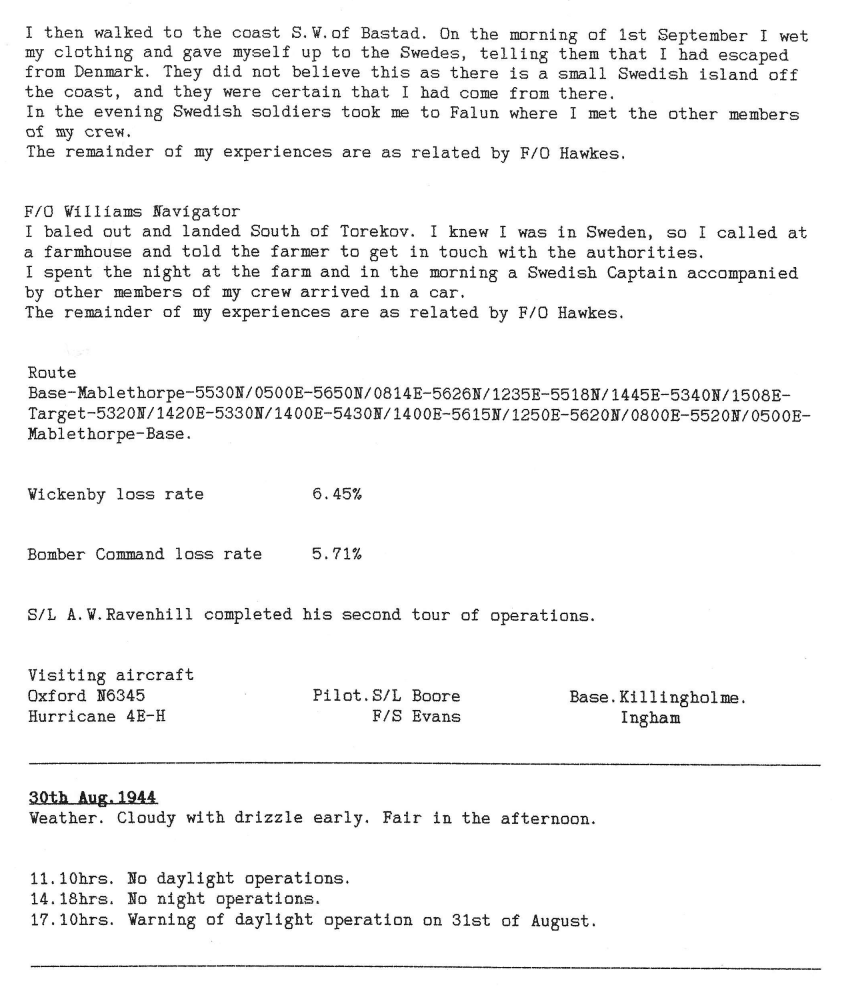 There were heavier losses this week than had been the case since the Mailly-le-Camp attack in May, 6 aircraft being lost during operations and one lost on landing at Wickenby – 26 aircrew were killed, 10 became POW’s and 8 were interned in Sweden, but were back in the UK by October. Reading the damage and combat reports, it is also clear that several aircrew also received wounds that took time for them to recover from. Attacks were made to targets in Germany as well as a V2 rocket site and storage area.