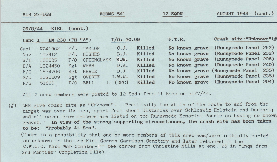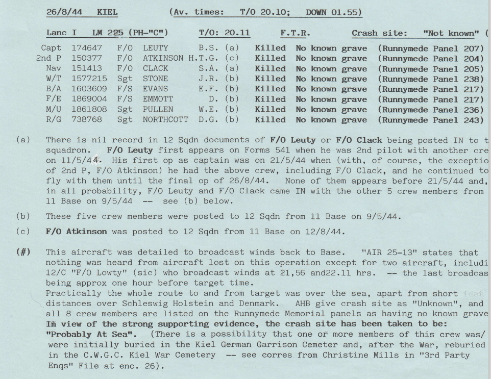 Extract from 12 Sqn Appendix to Operational Record Book