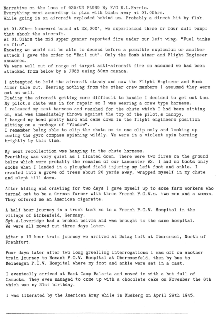 Extract from 626 Sqn Appendix to Operational Record Book