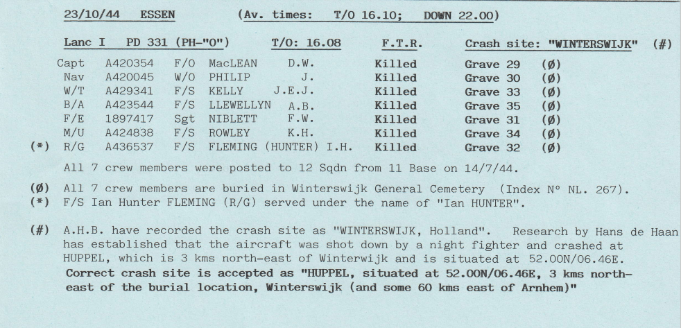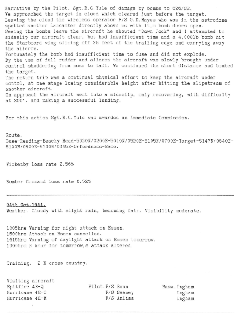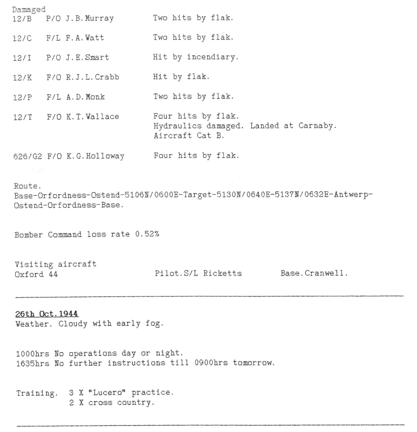 Extract from 12 Sqn Appendix to Operational Record Book