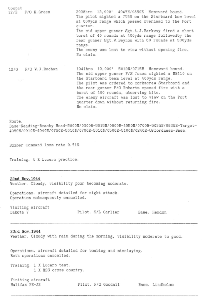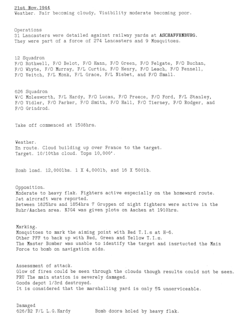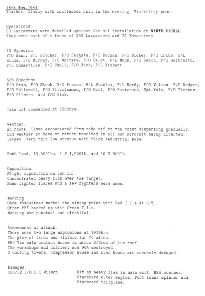 A quieter week for both squadrons, with only 2 missions – another attack on the synthetic oil plant at Wanne-Eickel and on the railway yards and lines at Aschaffenburg, southeast of Frankfurt. There were no casualties.