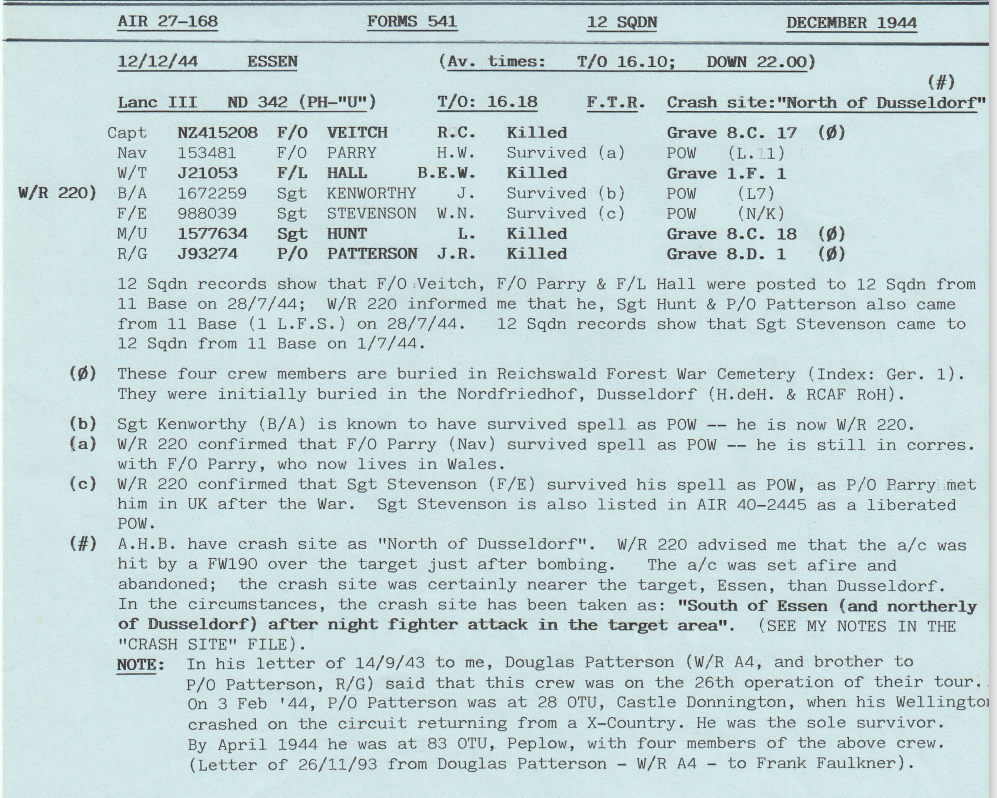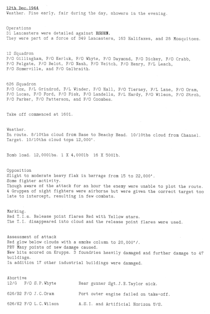 Extract from 12 Sqn Appendix to Operational Record Book