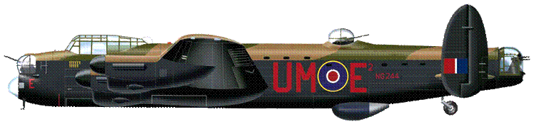 Lancaster NG244 was delivered to 626 Squadron at RAF Wickenby on 22 October 1944. On 2 November 1944 F/O Preece and his crew of ‘A’ Flight 626 Squadron took over flying Lancaster NG244, which had been given the 626 Squadron designation code UM-E2 and the call sign ‘Easy Two’. The crew flew 10 of their 21 missions in Lancaster NG244.
