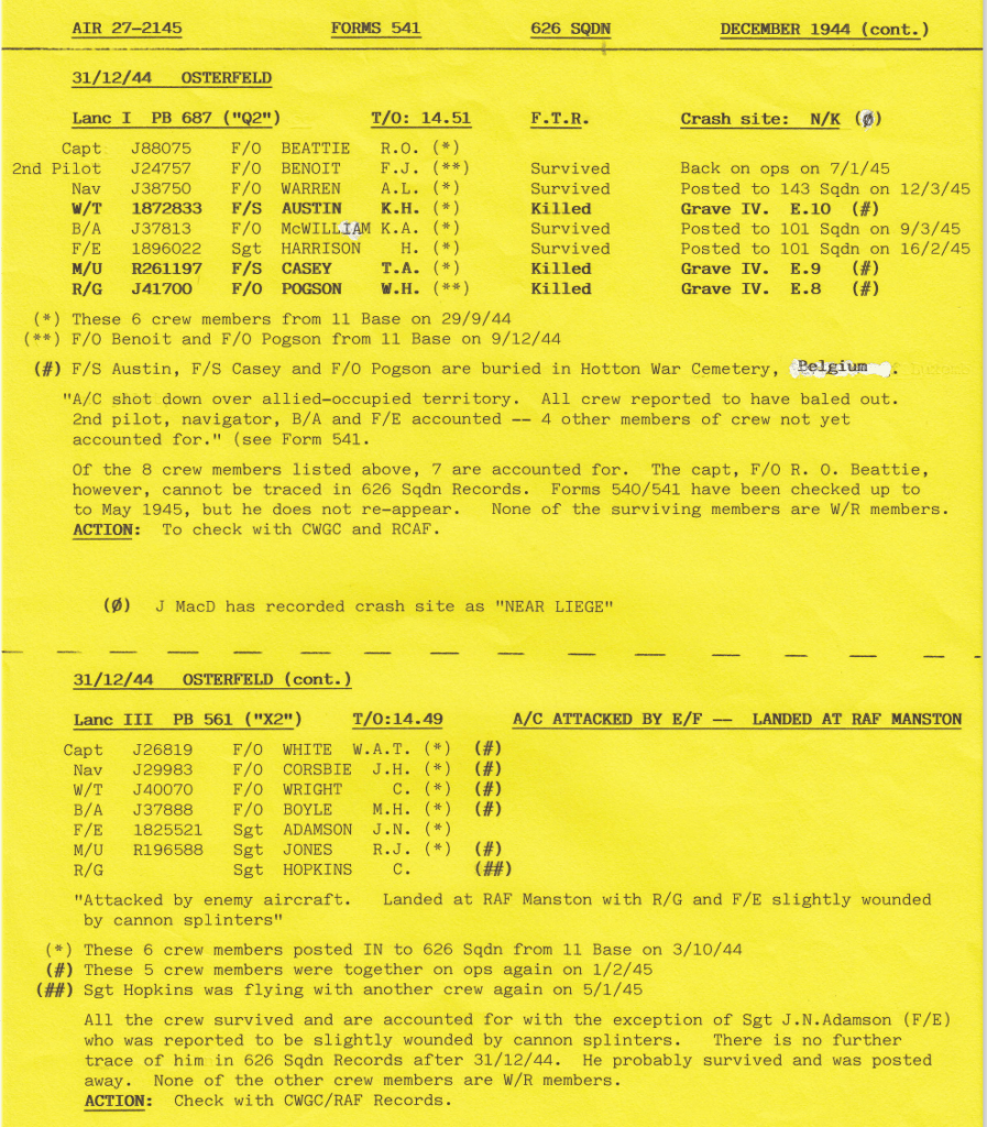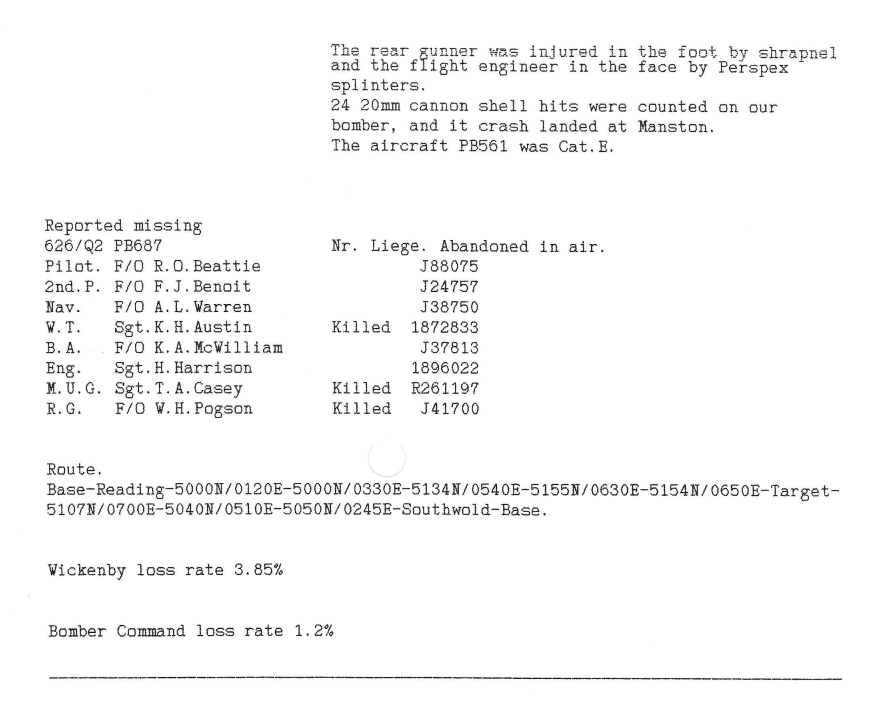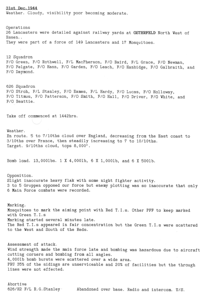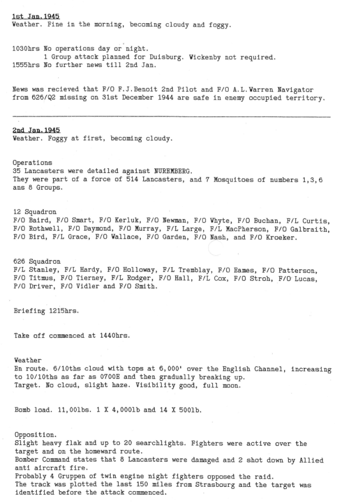 As the Allies continued to advance towards Germany, Bomber Command maintained attacks on German targets ahead of the ground forces. This week, Wickenby aircraft attacked Scholven, Osterfeld and Nuremberg, with one aircraft being lost, 3 aircrew killed and 2 slightly wounded.