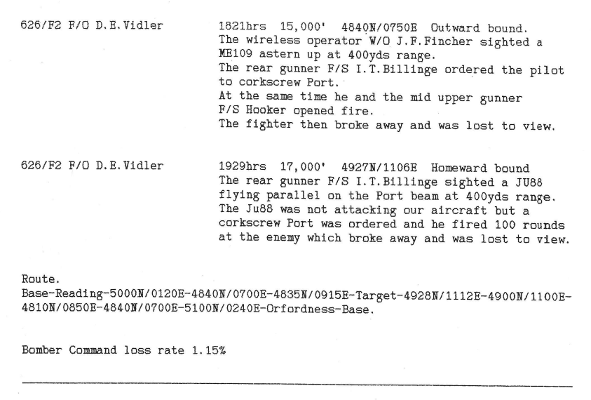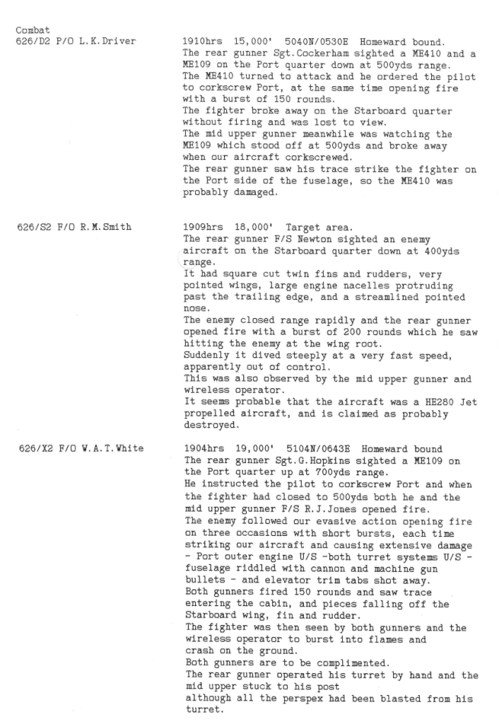 Extract from 626 Sqn Appendix to Operational Record Book