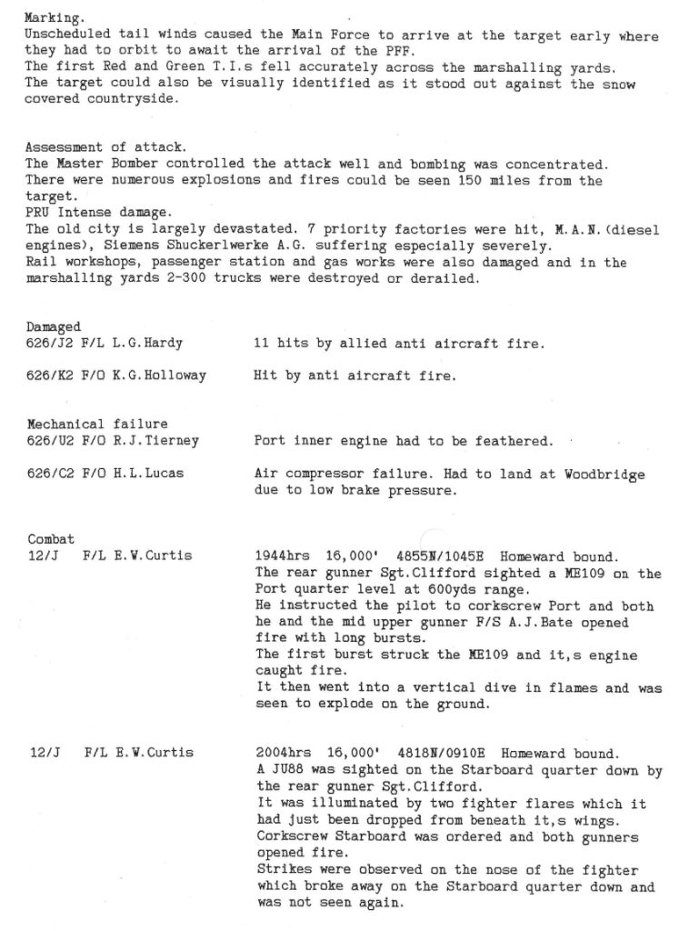The attack on Nuremberg was particularly successful and has been described as a “near perfect example of area bombing”. The MAN and Siemens factories and the railway yards were extensively damaged.