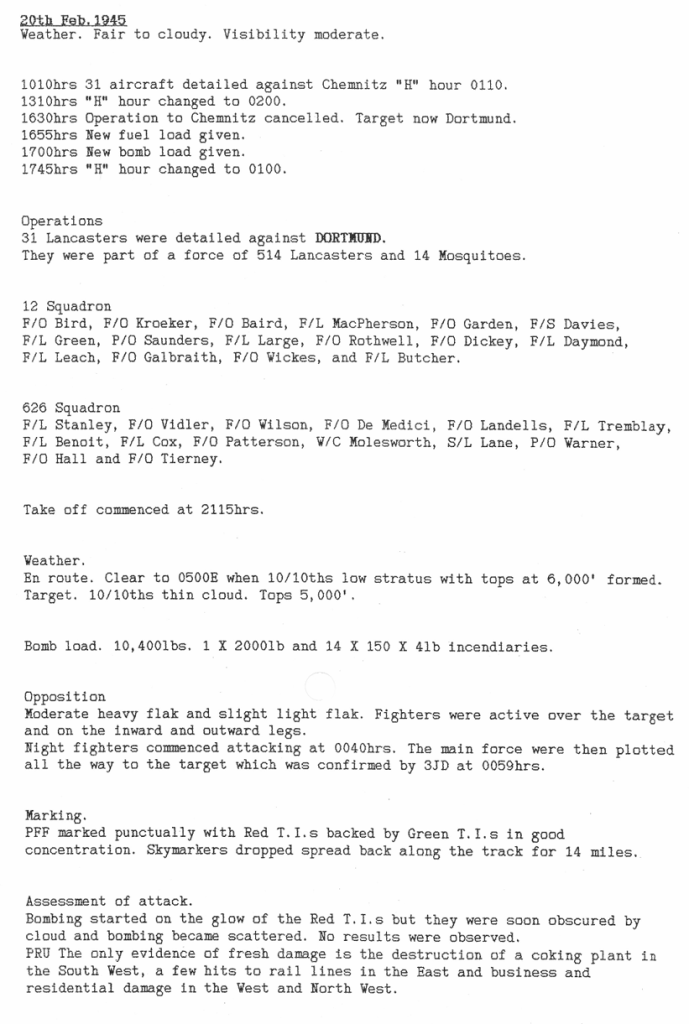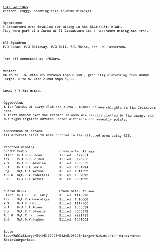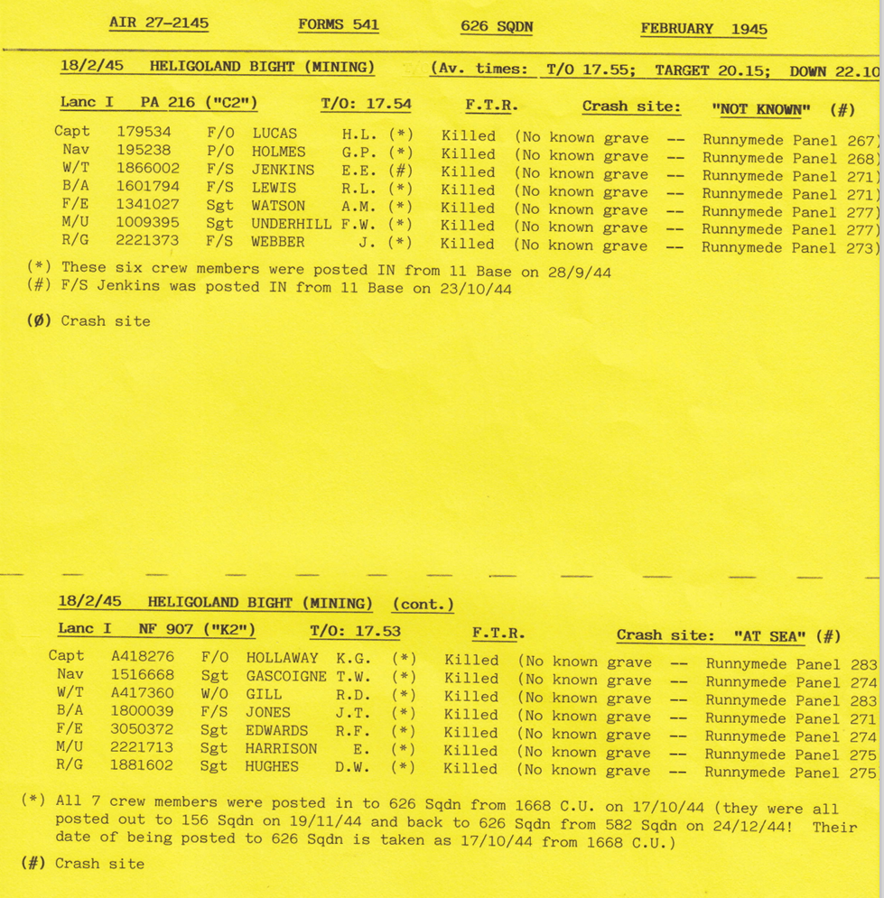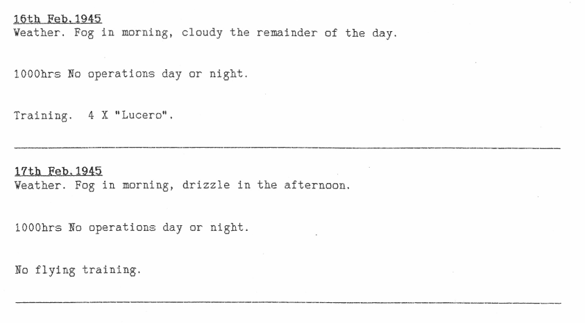 Extract from Appendix to 626 Sqn Operational Record Book