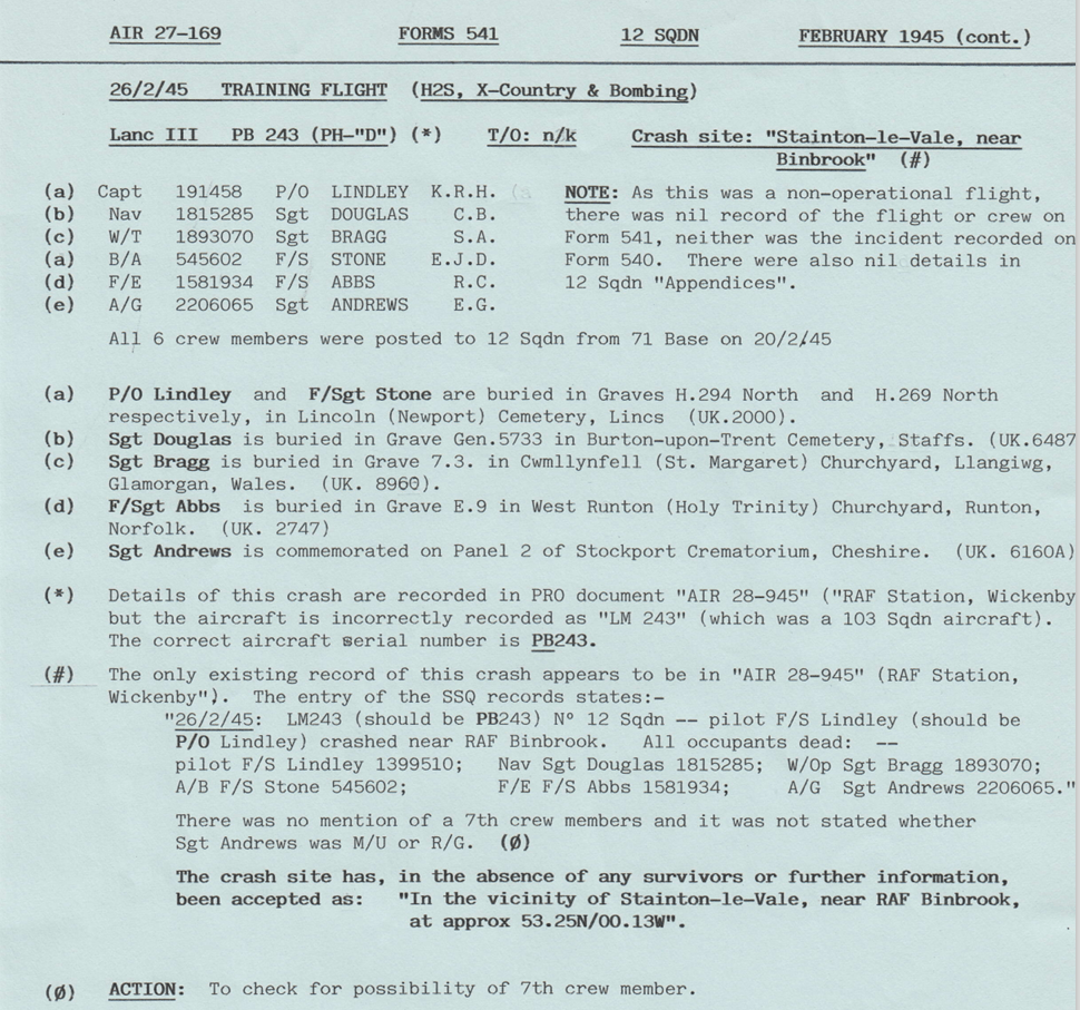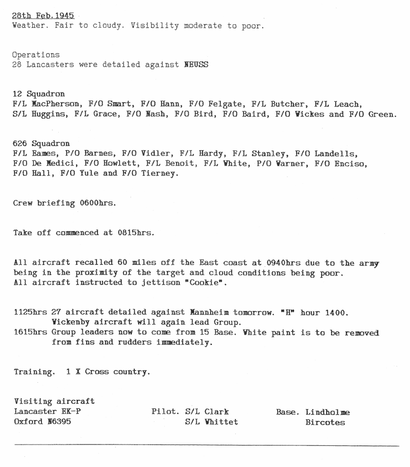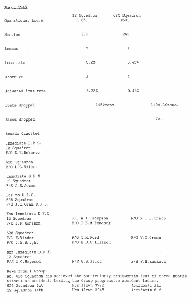 Extract from Appendix to 12 Sqn Operational Record Book