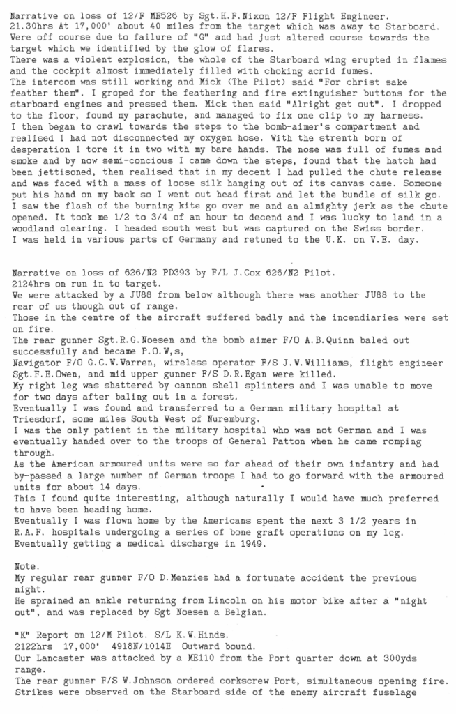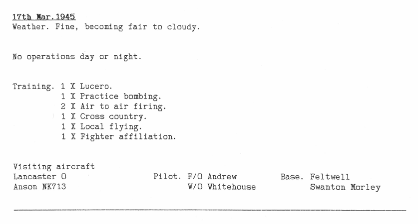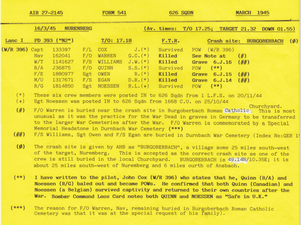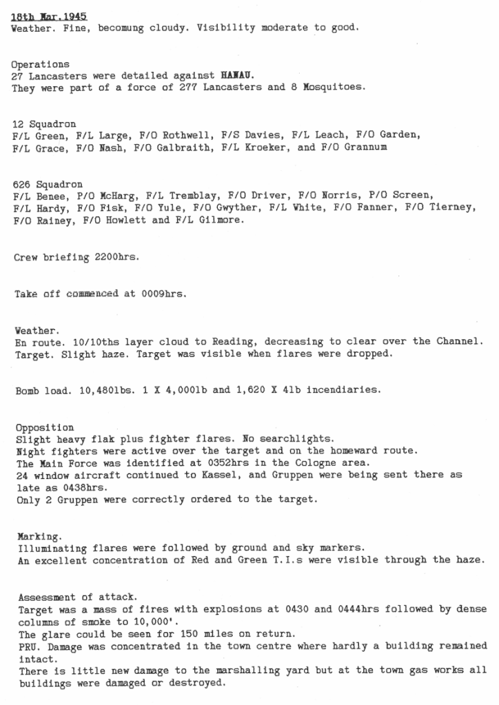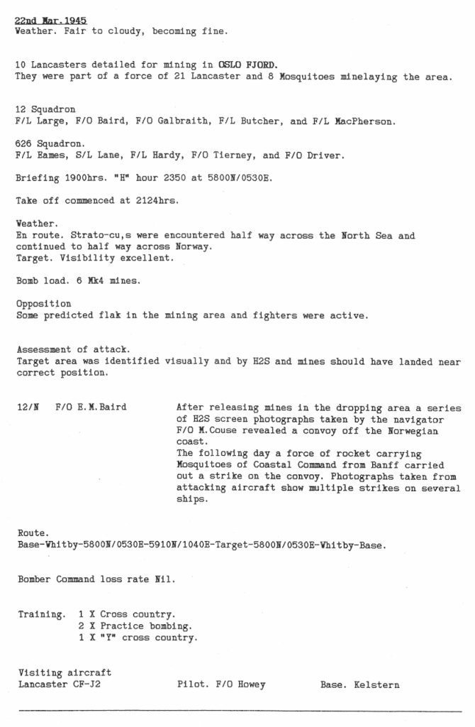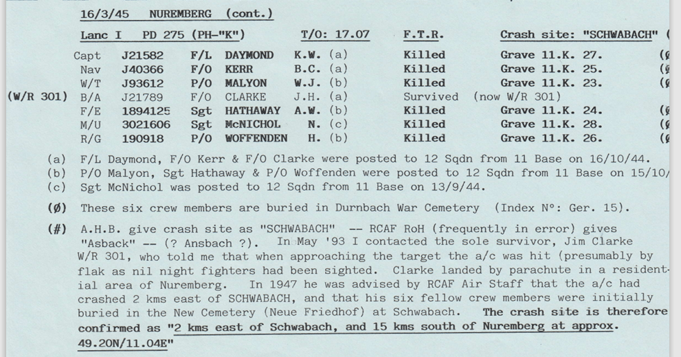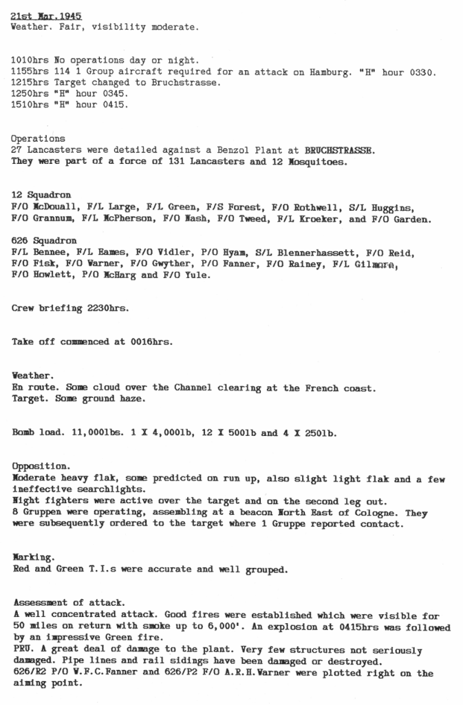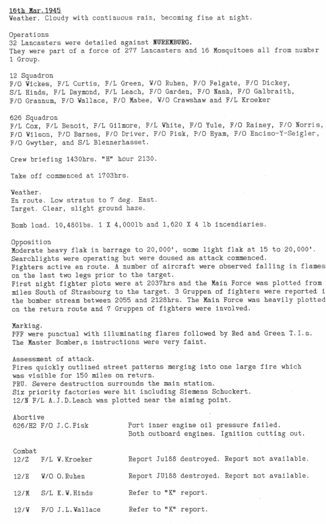 This week saw one of the worst nights, for casualties, of the war for RAF Wickenby, with 5 aircraft being lost during the attack on Nuremburg – 25 aircrew were killed and 10 became POW’s – there are some detailed accounts from survivors in the Station Diary section below. Attacks were also made to benzol plants and minelaying in the Baltic and Oslo Fjord.