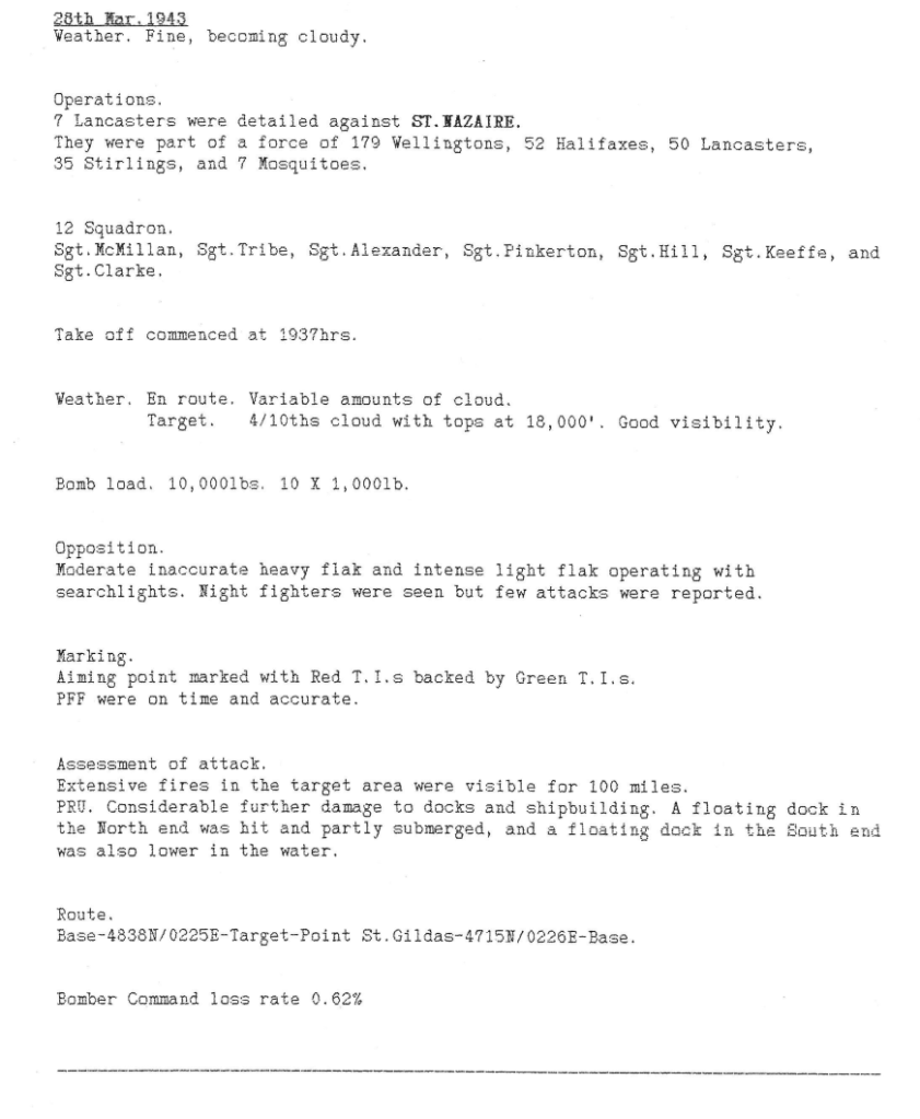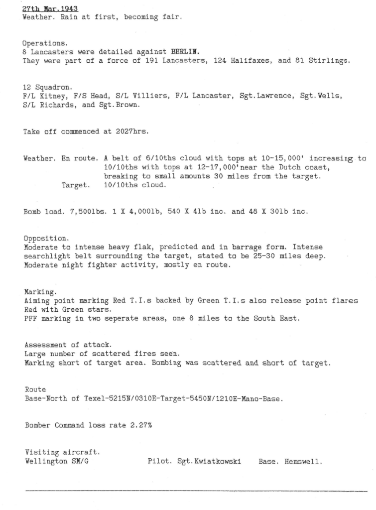 Two aircraft and all their crews were lost on the Stettin attack. As you will see below, both these crews were killed on or before their 5th mission. This was considered to be the most dangerous time for new crews.